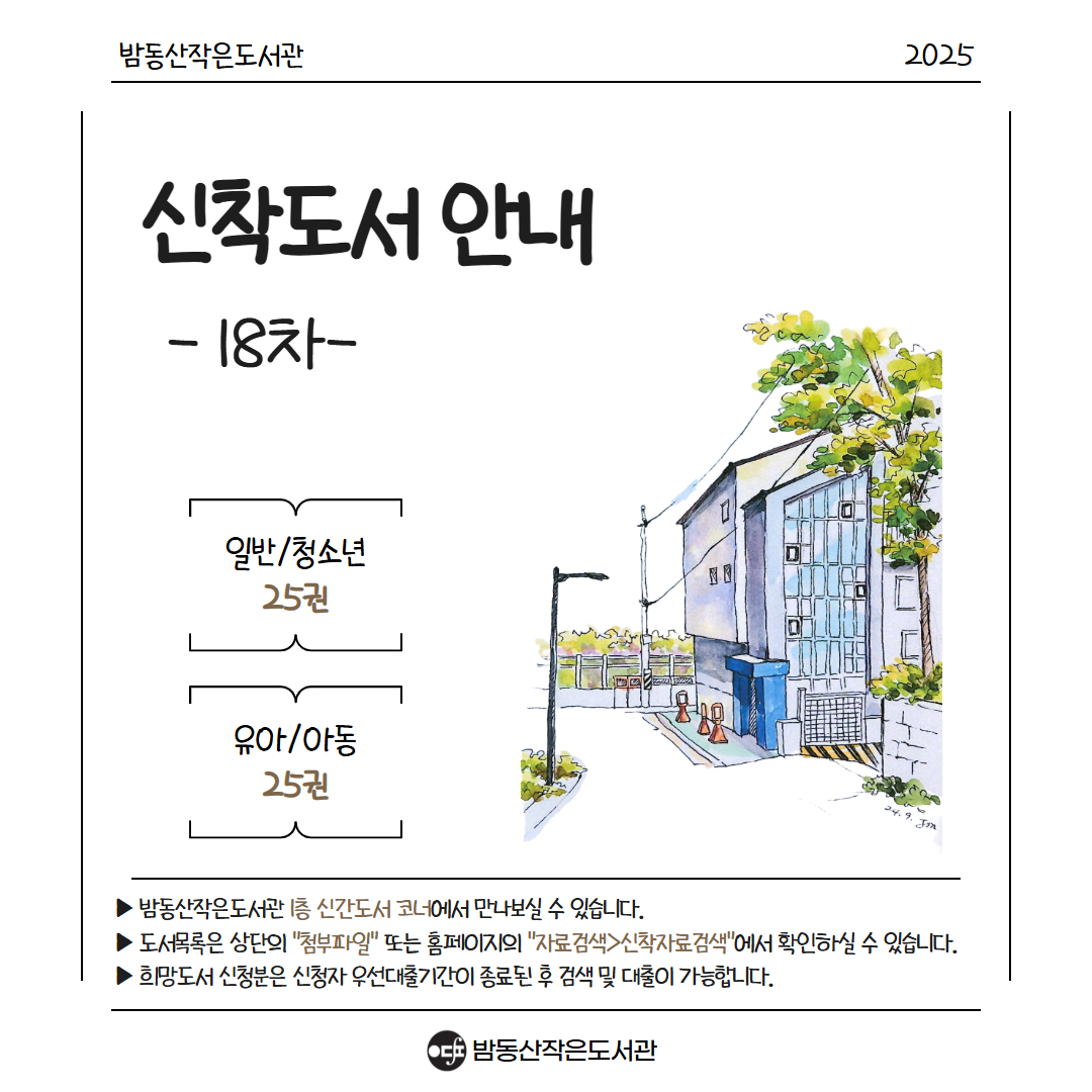 | 제목 | 밤동산작은도서관 2025년 18차 신착도서 안내 |