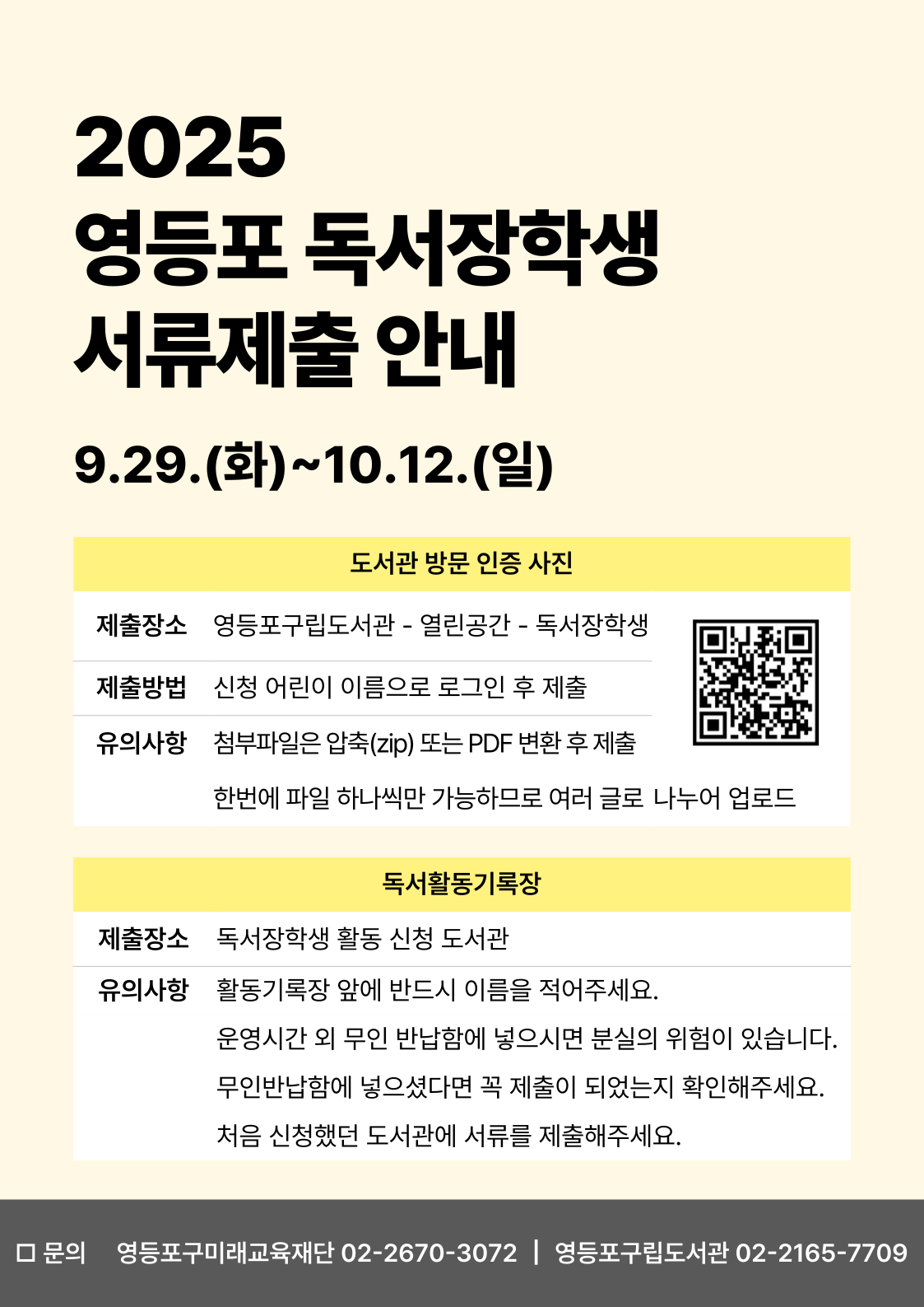 제목 | [독서장학생] 📢 2025 영등포 독서장학생 서류 제출 안내 |