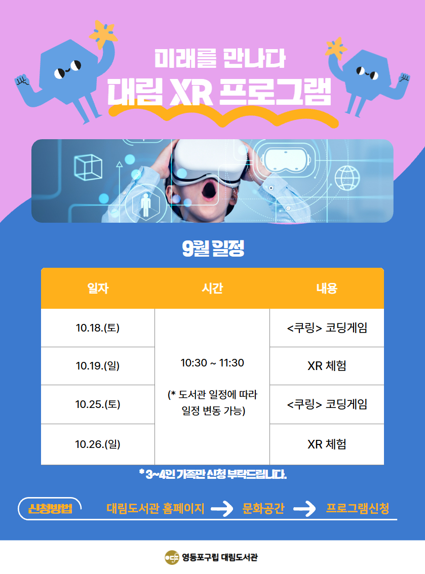 강좌명 | 『미래를 만나다:대림 XR프로그램』 10.18.(토) 10:30 프로그램 |