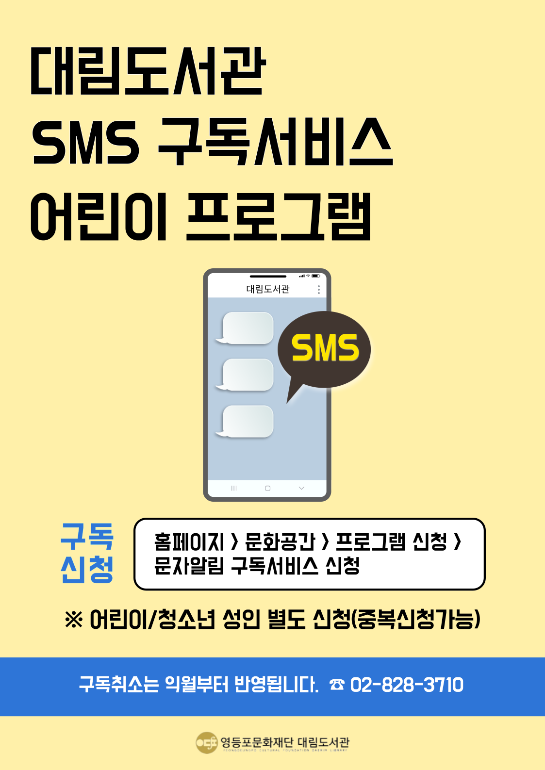 ♦[프로그램 SMS 알림 서비스] 어린이 프로그램 문자 알림 구독서비스