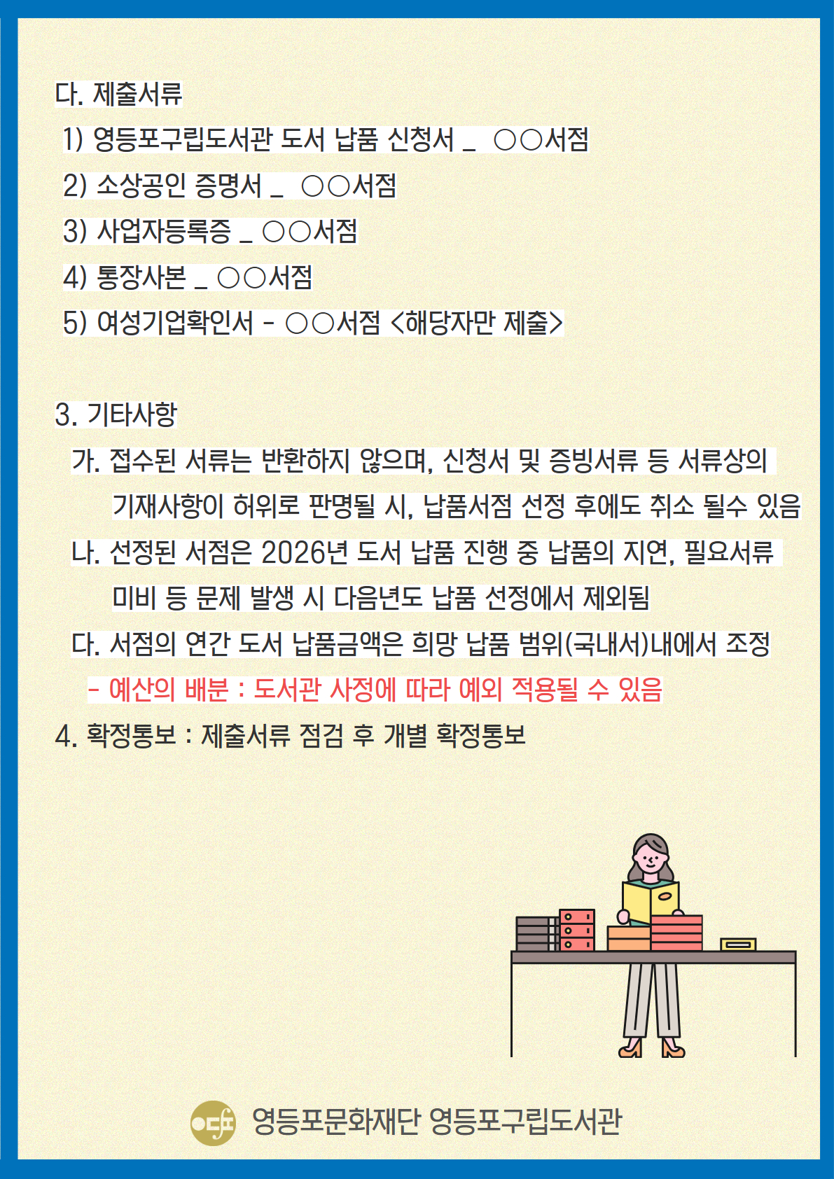 1. 2026년 영등포구립도서관 도서 납품서점 모집 공고문.hwp
