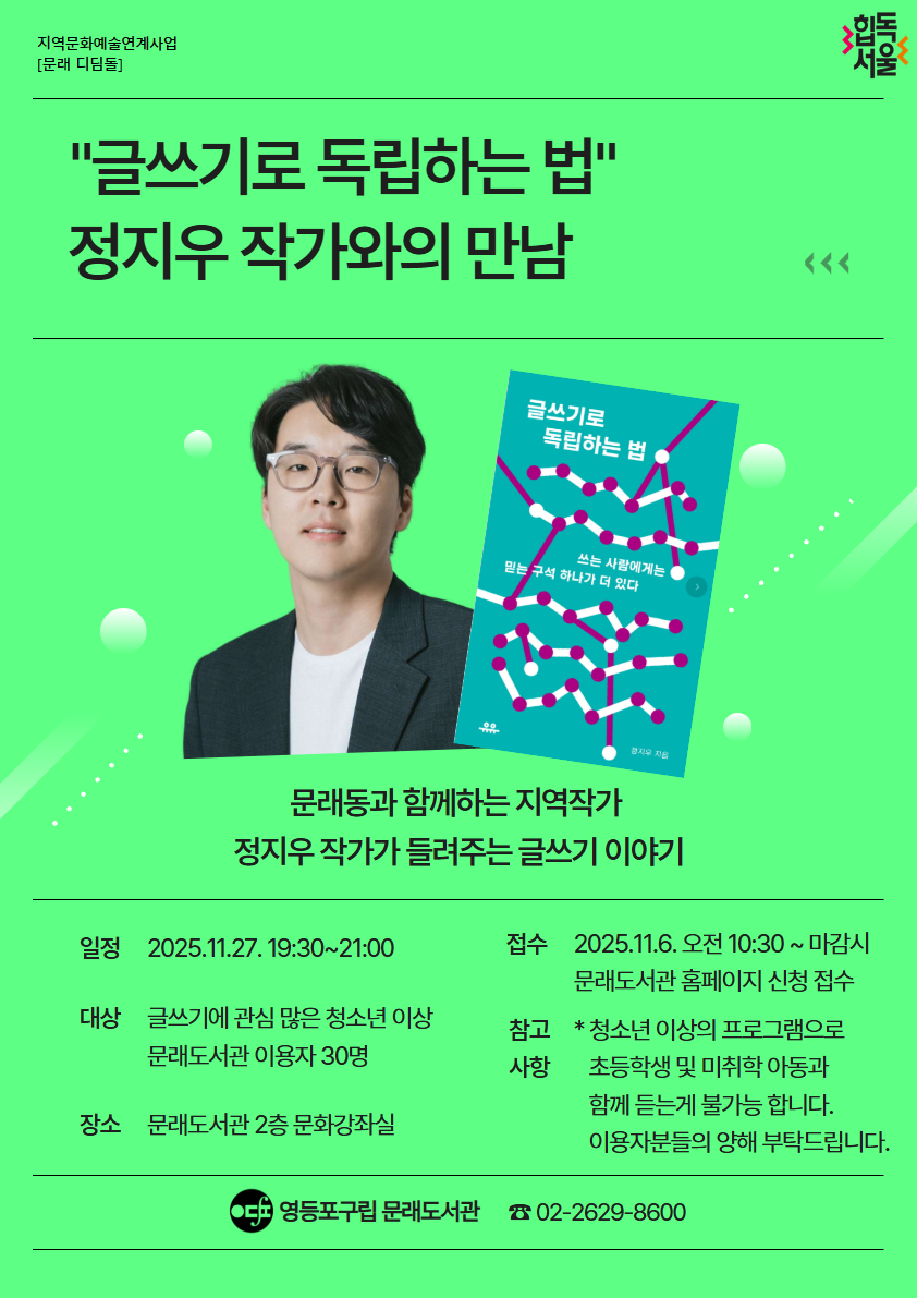 [문래 디딤돌] 정지우 작가와의 만남 -글쓰기로 독립하는 법