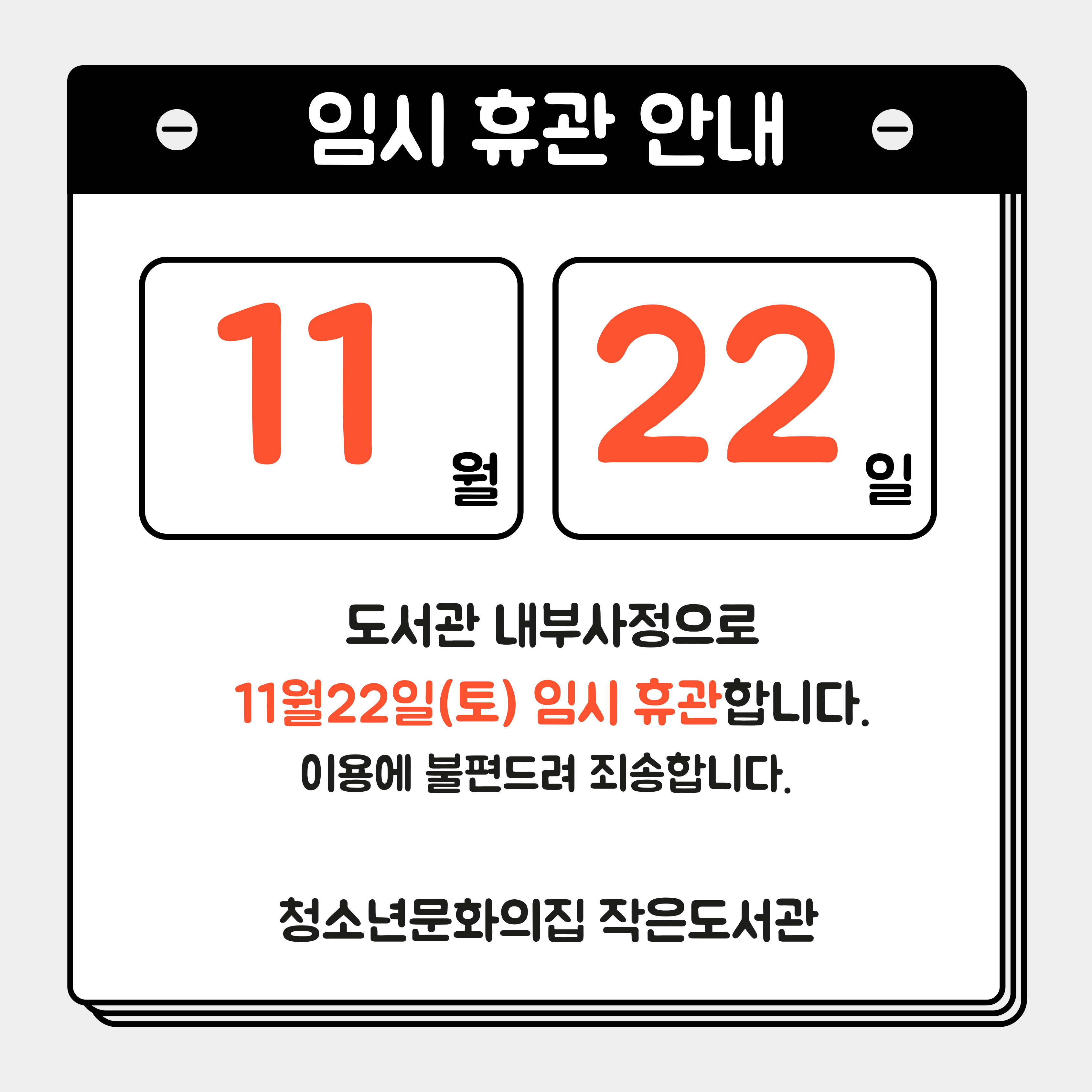 (11.22.) 청소년문화의집 작은도서관 휴관 안내