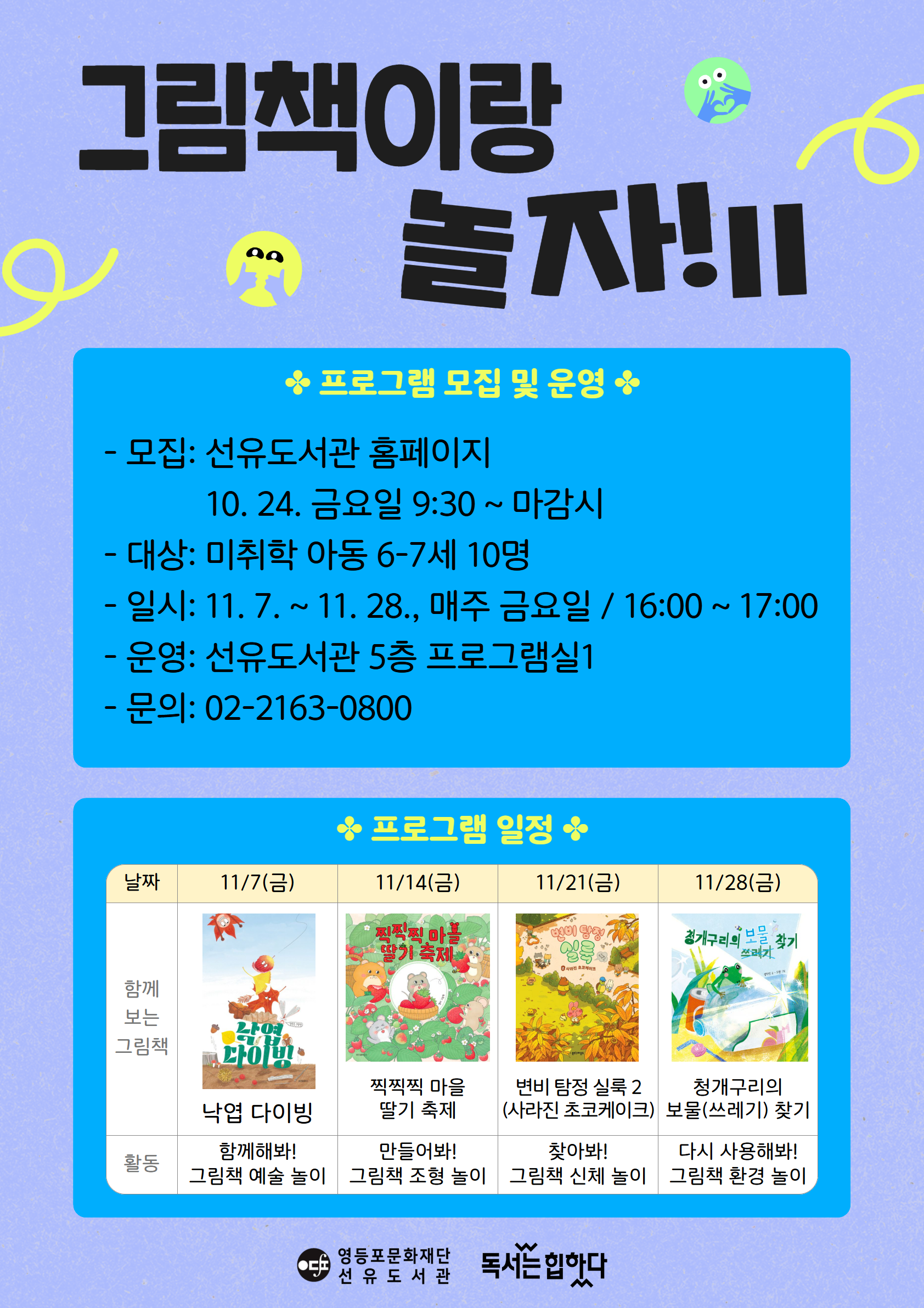 선유도서관 2025년 유아 프로그램 「그림책이랑 놀자!Ⅱ」 안내