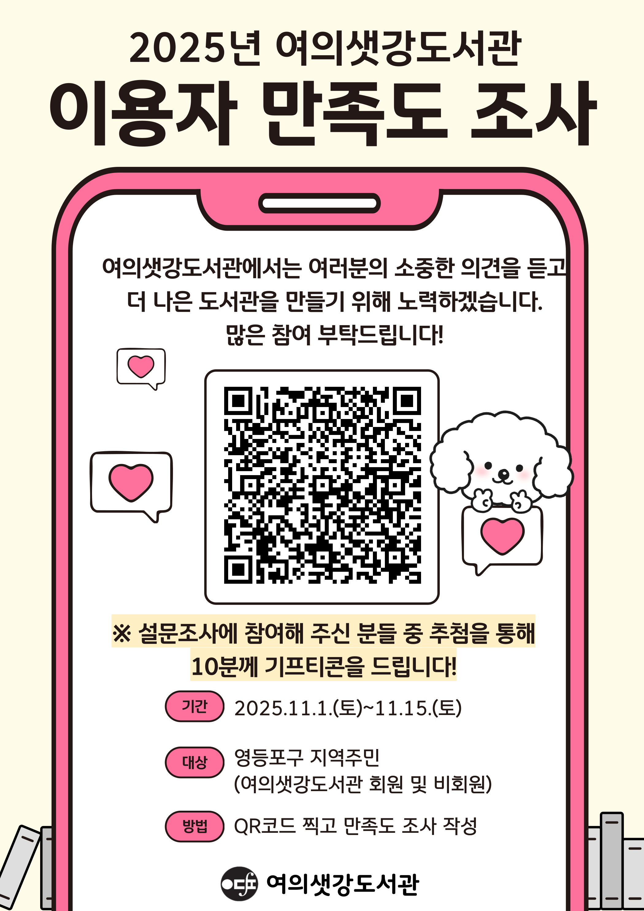| 제목 | 2025년 여의샛강도서관 이용자 만족도 조사 |