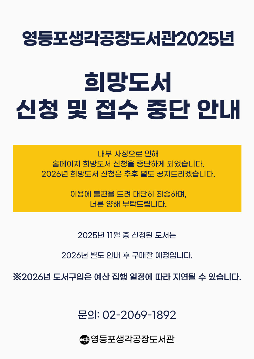 영등포생각공장도서관 2025년도 희망도서 신청 중단 안내