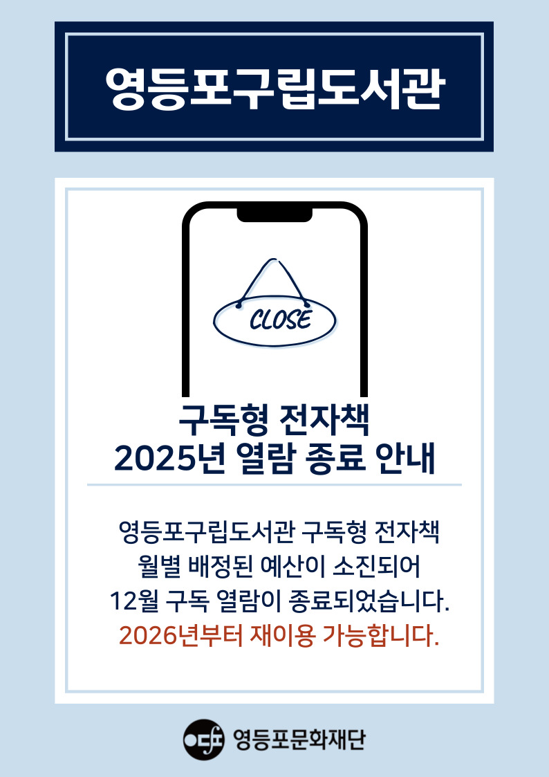 [영등포구립도서관] 구독형 전자책 12월 열람 종료 안내