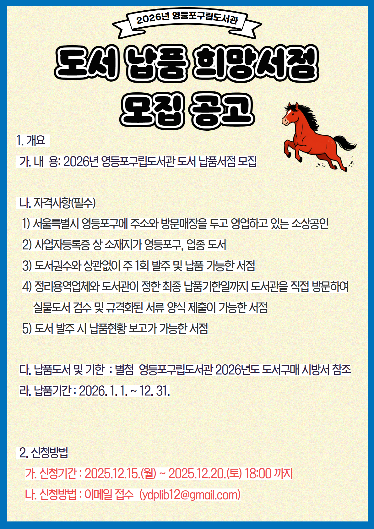 1. 2026년 영등포구립도서관 도서 납품서점 모집 공고문.hwp