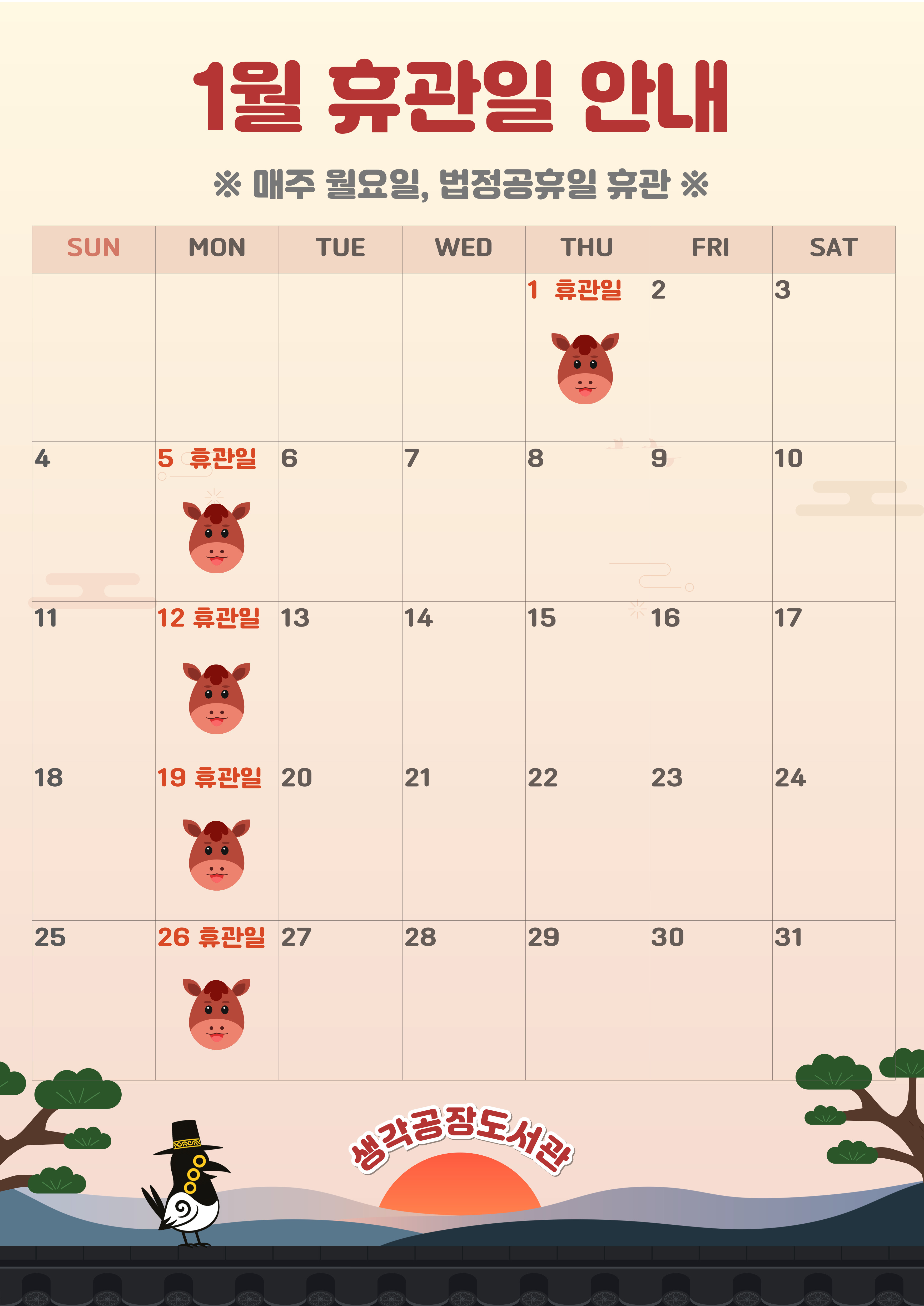 2026년 1월 도서관 휴관일 안내